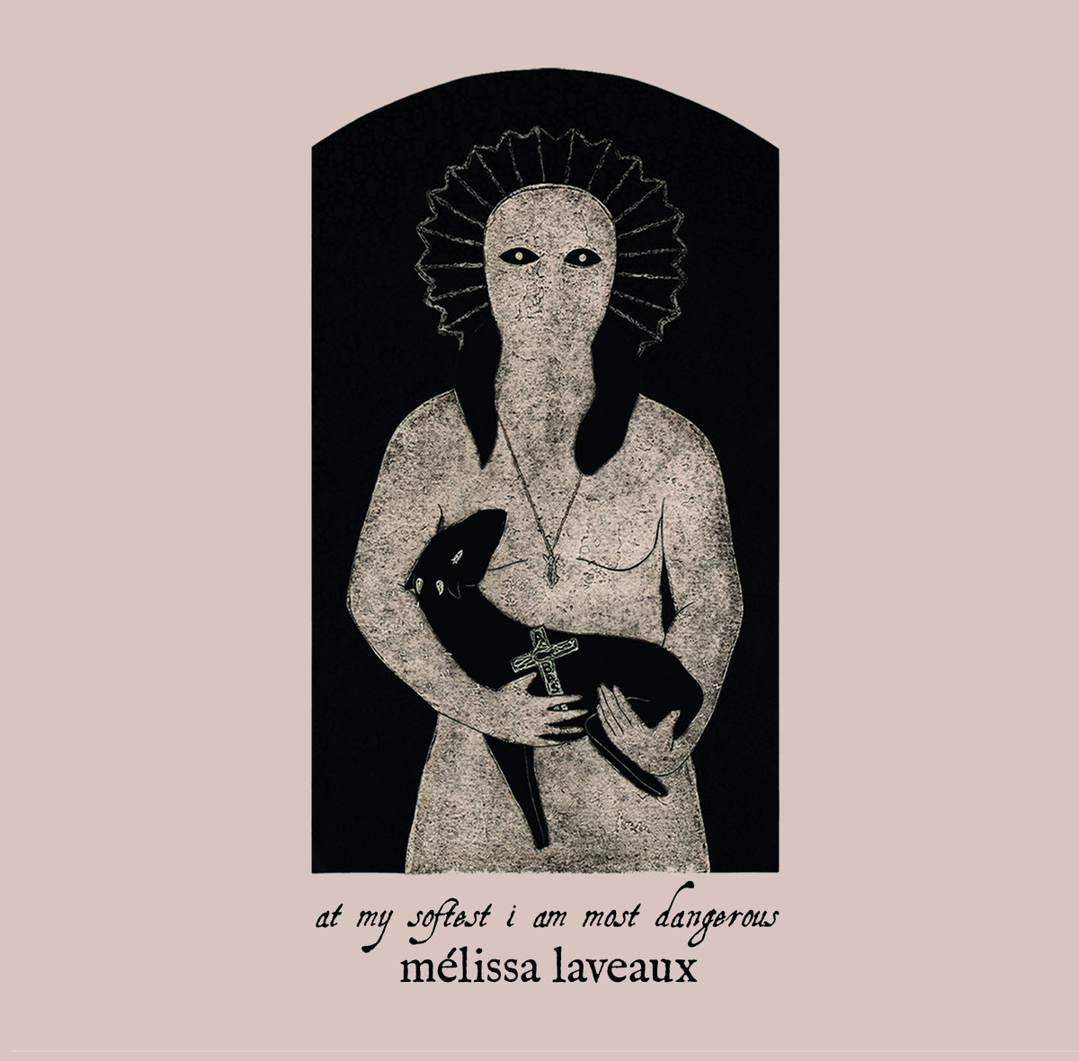 Das Visuelle radikalisiert diese musikalische Setzung bereits vor dem ersten Ton. Das Cover zeigt eine sakrale, maskenhafte Figur, die ein schwarzes Lamm schützt – eine Inszenierung, die das Verhältnis von Pose und Authentizität sofort problematisiert. Es ist kein Porträt einer Singer-Songwriterin, sondern die Konstruktion einer mythologischen Identität. Diese bewusste Künstlichkeit spiegelt die musikalische Strategie wider: Laveaux nutzt das Intime nicht als Bekenntnis, sondern als hochgradig stilisierte Waffe. Die Sanftheit, die das Bild ausstrahlt, ist durch die dunkle, fast monolithische Rahmung bereits als potenziell gefährlich markiert.